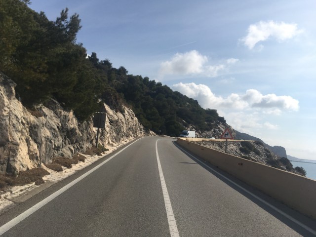 Apropos tut nicht weh, die Katalanen sind unglaublich nette Leute. In den Lokalen waren die Leute fast dankbar ihr Englisch an uns zu demonstrieren, hab’ mich noch gar nicht so richtig auf Spanisch blamieren können. Der Kellner gestern beim Abendessen hat mir ein Gin Tonic gemischt das war so gut gemeint, dass ich den Salat fast nicht mehr erlebt hätte. Aber vorallem die Autofahrer haben wir heute hart getestet. In Wien wundert mich Anhupen nicht und bis zu einmal Stinkefinger pro Tag ist auch drin ohne, dass ich die Mondphase hinterfrage. Hier, also dort wo ich grad bin, sind wir gleich nach Barcelona auf eine Höhenstrasse, supereng, keine Sicht, hinter uns die Autos gestaut und trotzdem hats keinem einzigen Spanier den Vogel rausghaut. Beim vorbeifahrenden Auto war ich eh immer vorbereitet und hab’ hingschaut aber es hat nie wer zurückgschaut. Respekt.