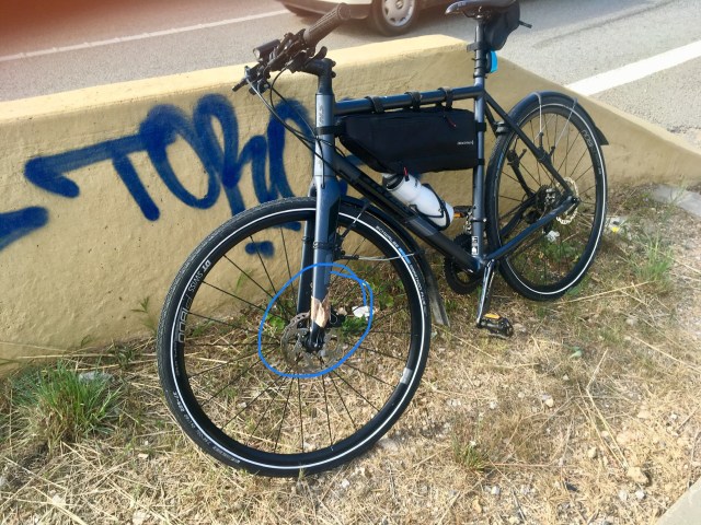Thomas’ Rad ist gut angekommen, meines nicht. Unspannende technische Geschichte, zusammenfassend kann man sagen ich bin ein Trottel und hab’ nicht auf den Thomas gehört und deswegen ist jetzt meine Achse am Vorderrad kaputt. Ich bekomm’ sie micht mehr runter. Die gute Nachricht ist, ich kann so fahren. Die schlechte ist, dass ich jetzt meinen Schlauch nicht mehr wechseln kann sondern nur flicken. Ich hab beschlossen ich lass’ das jetzt so und versuche nicht ein Problem, dass ich selbst nicht ganz verstehe, in einer Sprache, die ich nur schlecht kann, irgendeinem Typen im Fahrradshop zu erklären und der macht dann mein Rad komplett kaputt.