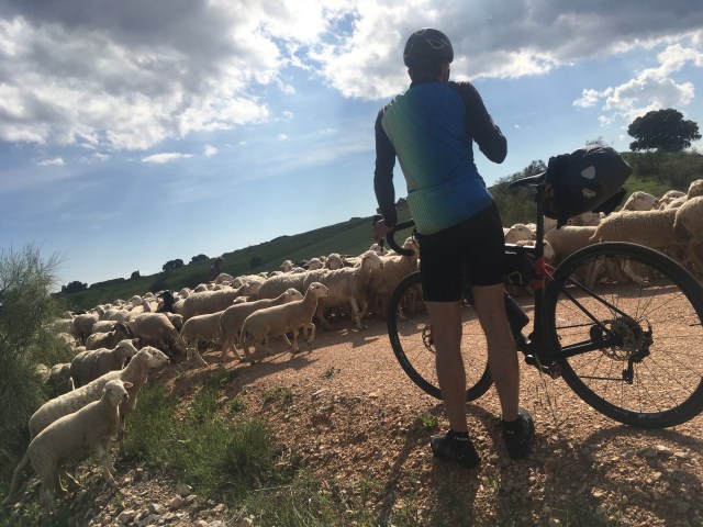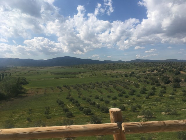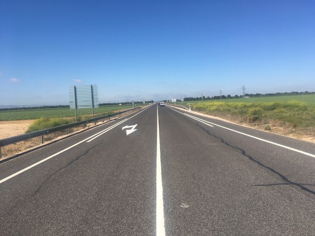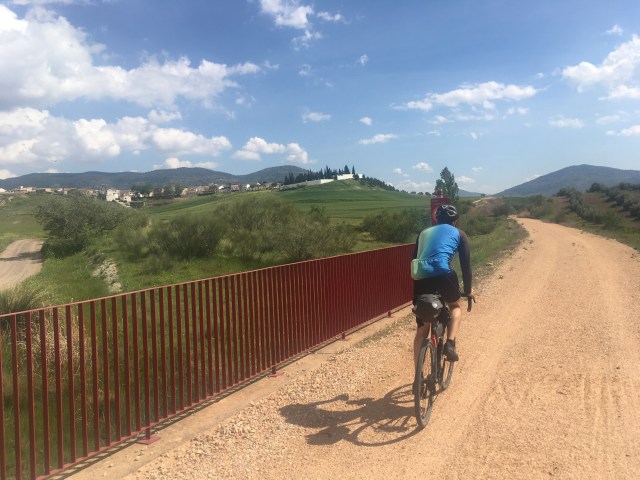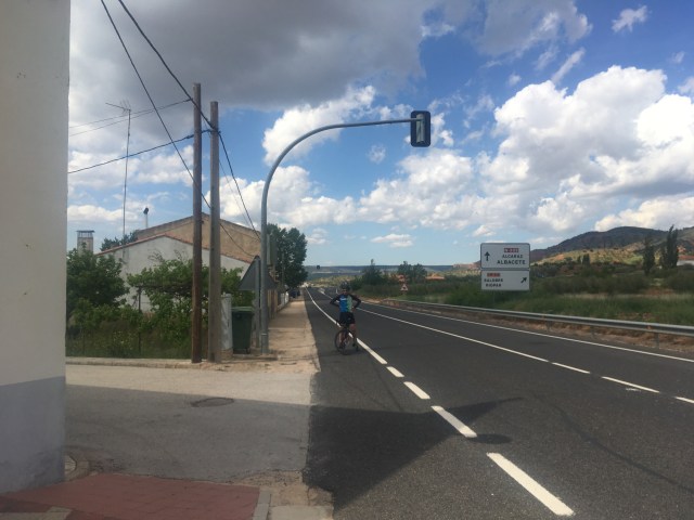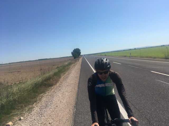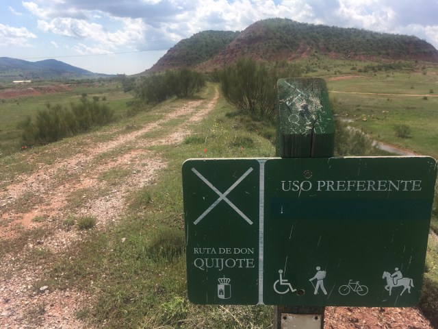 Die ersten 100 Kilometer auf derselben Straße, hintereinander, nichts gesprochen, immer leicht bergauf und gegen den pfeifenden Wind. Überall Windräder und Don Quijote Touren.