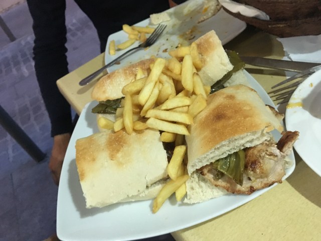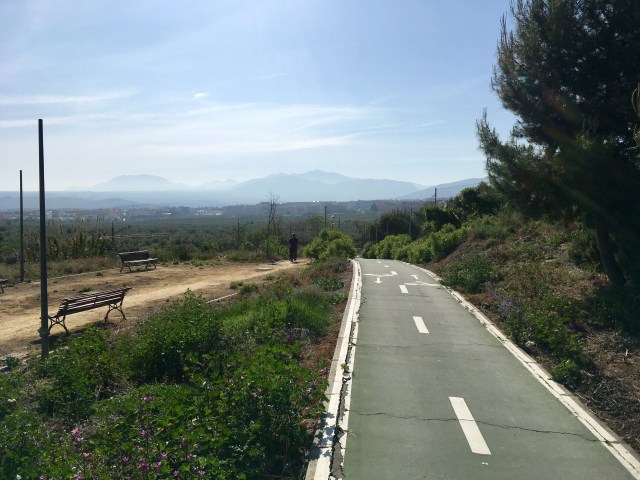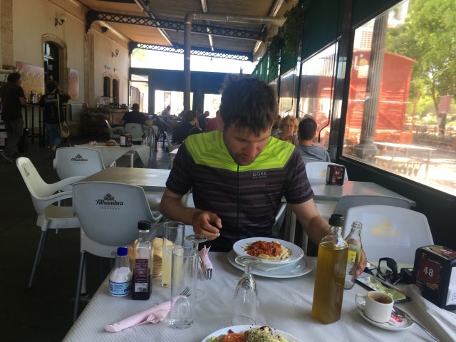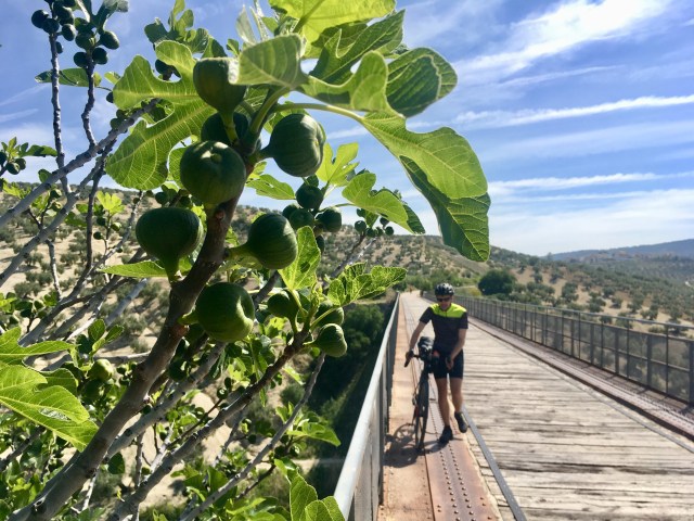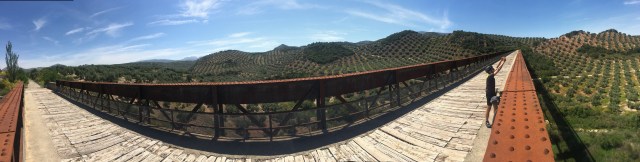 Wir fahren jetzt schon den hundertsten Tag am “via verde de aceite”, der ehemaligen Bahntrasse. Oliven, Traktor, Brücke, Tunnel, Brücke, Ruine links, Schafe im Weg, auf Thomas warten, mir schlaft das Gesicht ein.