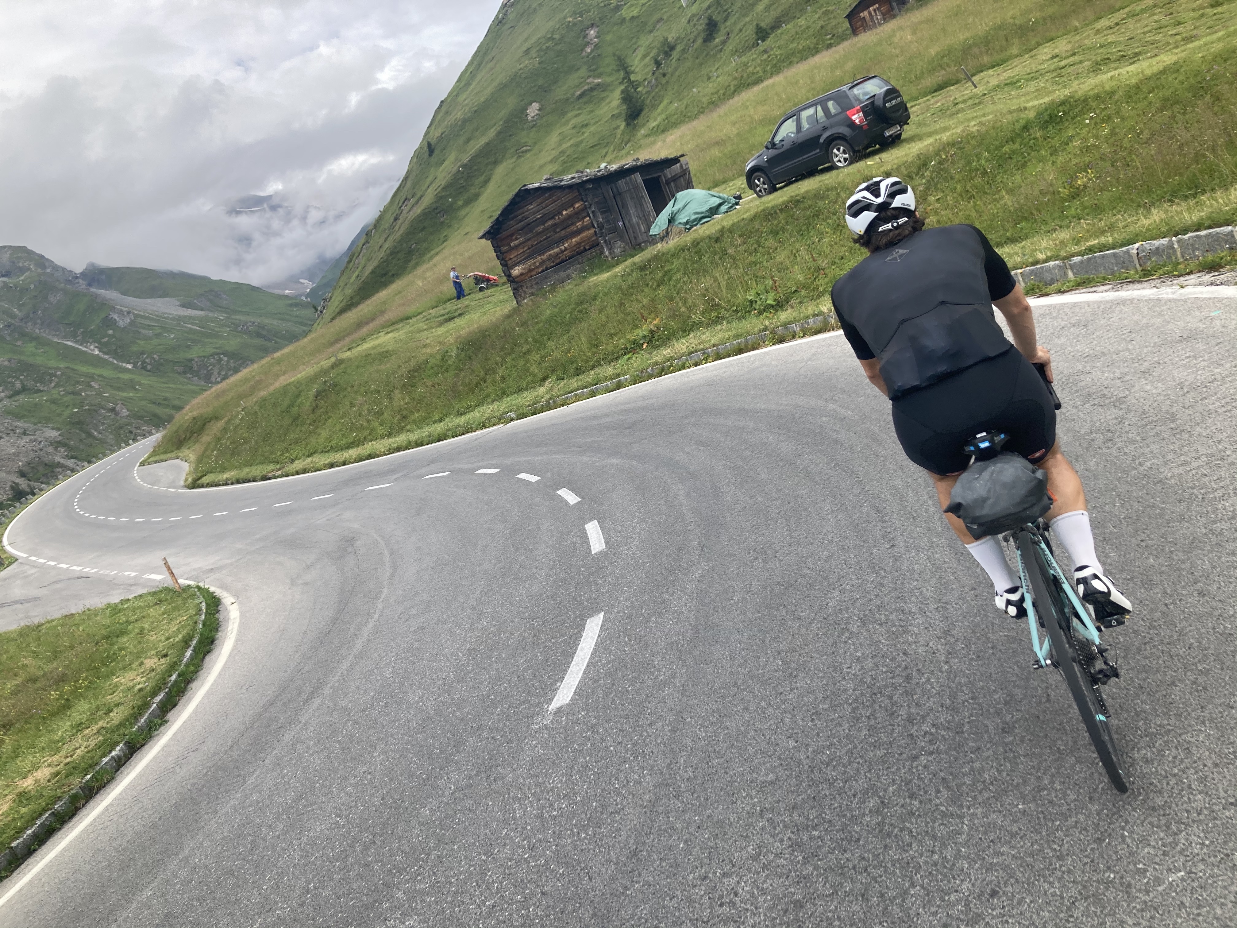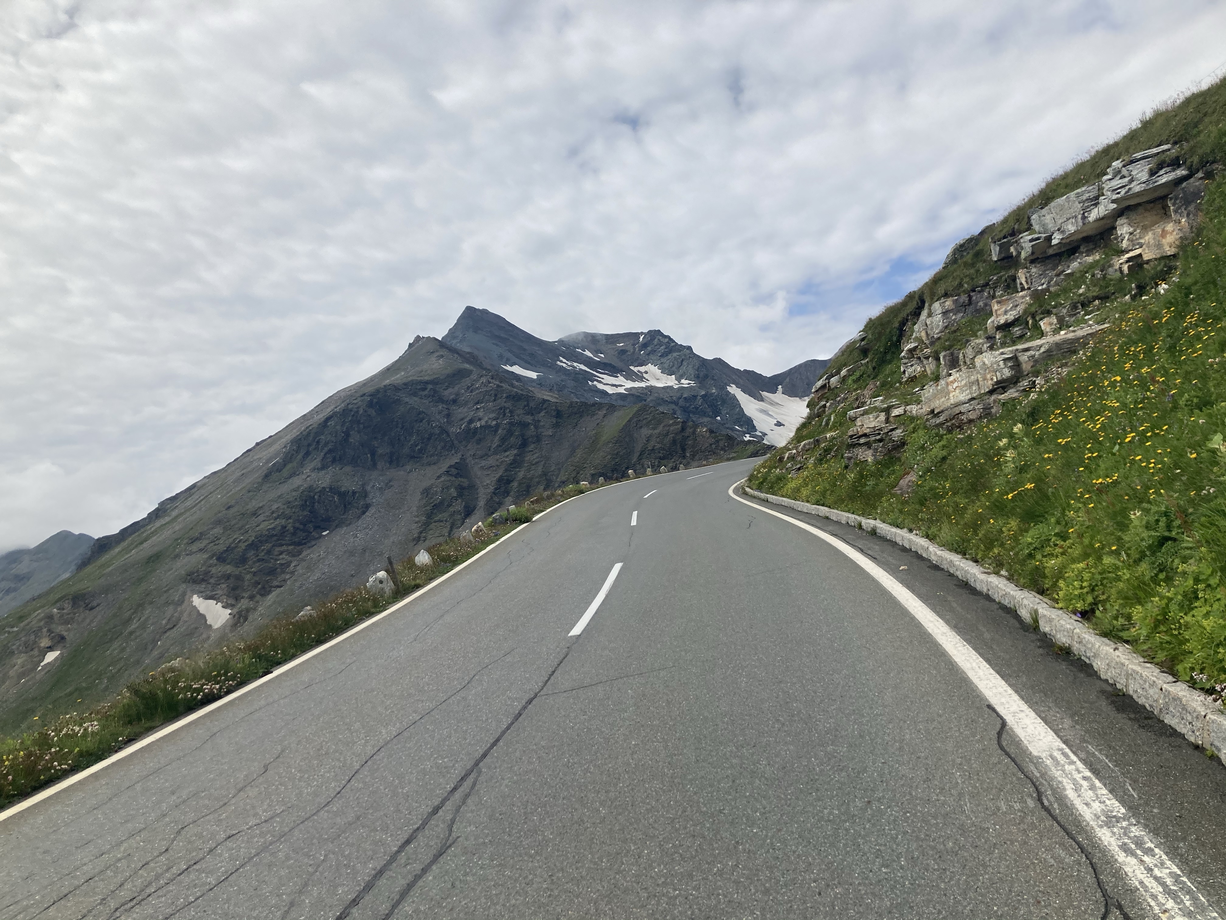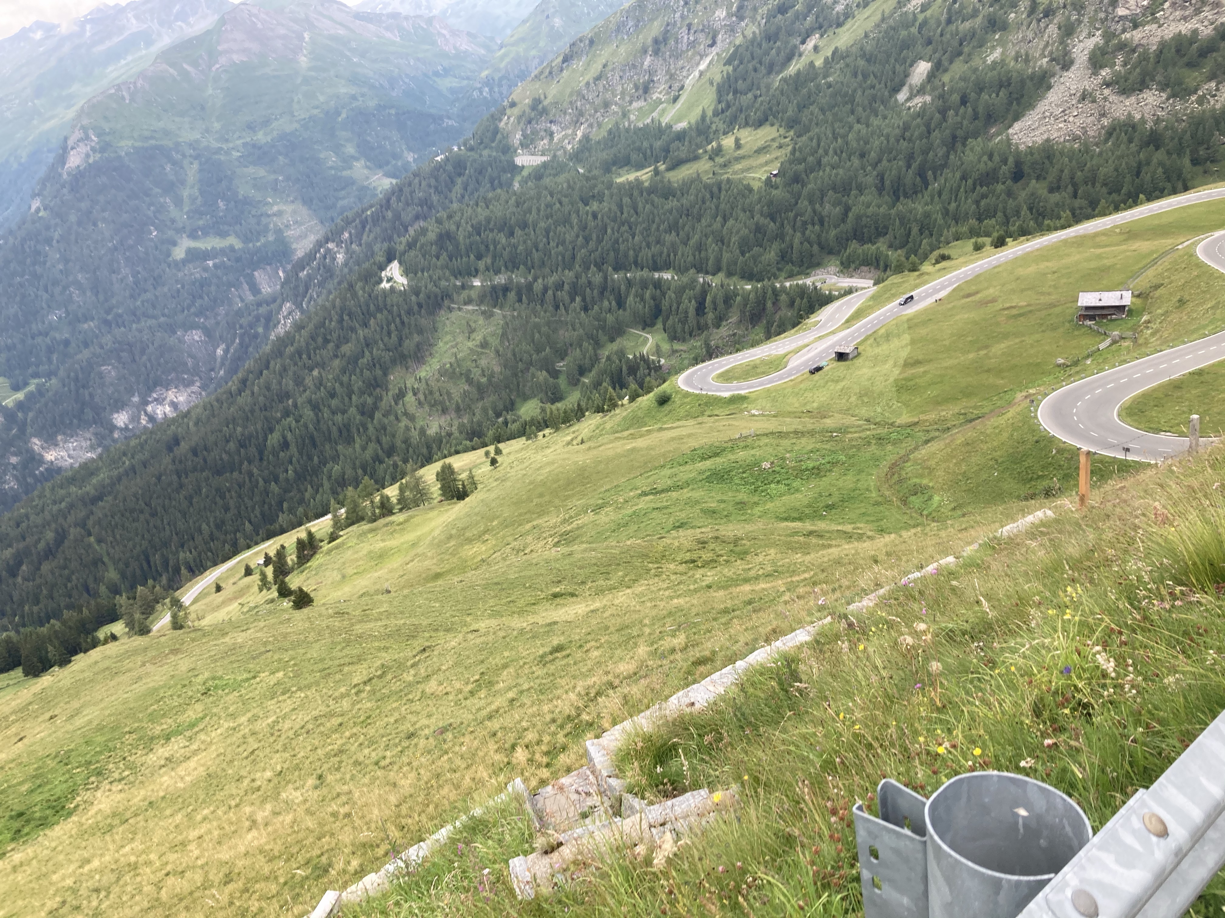 Nach diesem Wahnsinn ist es genauso super weitergegangen. Ich Genie hab vergessen bei der Abfahrt vom Großglockner meine Uhr aufzudrehen!! Ich muss das also alles nocheinmal fahren sonst gilts nicht. Zweite gute Aktion war mein Magen oder Darm oder so, tut schon seit ein paar Tagen irgendwie komisch. Was ich die letzten Tage als Hunger interpretiert habe ist dann heute auf der Hochalpenstrasse zu einem richtigen Schmerz ausgewachsen. Habe dann eigentlich viel erwartet aber bis auf Blähungen ist nichts gekommen. Mexalen hats schlimmer gemacht aber dafür wars nach drei Mentos viel besser. Hab dem Thomas dann seine komplette Packung Mentos weggefressen und es war weg. Eigentlich Homöopathie, Unterschied ist es schmeckt gut und man bekommts beim Billa.