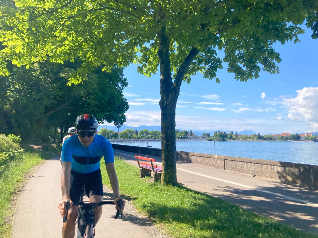 Sonst war der Fahrradweg um den Bodensee sehr gut besucht. Die Ebike-Last ist hier deutlich größer als am Donauradweg, und alle sehr empfindlich, Kommentare wie “Fahrrad Rowdies” und “Achtung die Tour de France muss durch!” haben wir ignoriert, trotzdem den 30er Schnitt nicht geschafft.