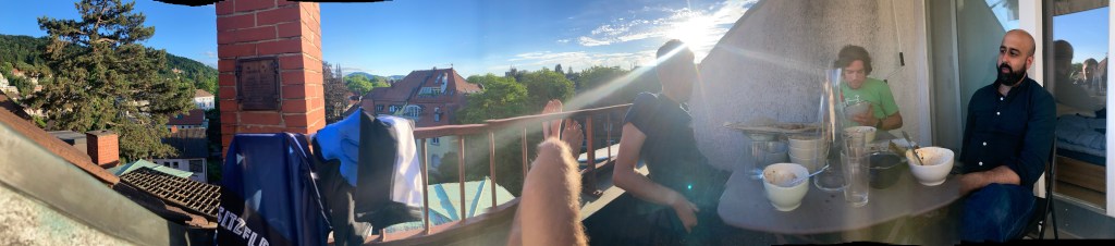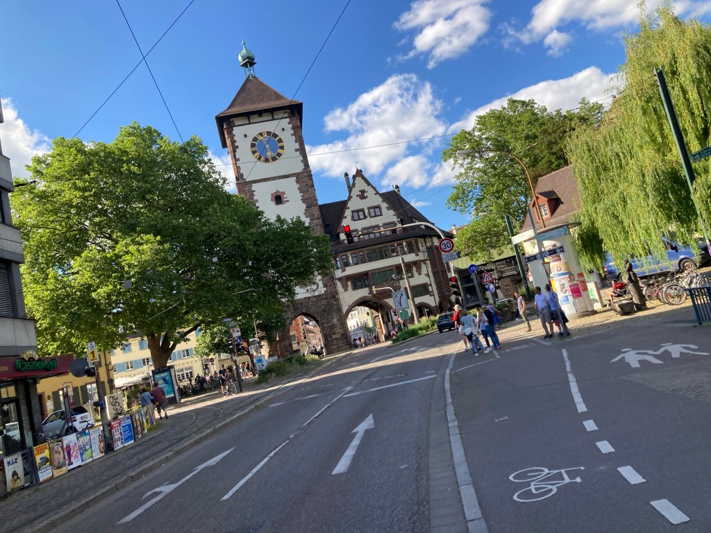Freiburg ist eigentlich schön, sehr grün, Fluss durch, Berge in der Nähe, Architektur wie in Frankreich. Beherbergt hat uns der Korl, großes Haus, er wohnt im Dachgeschoss, die restlichen Leute im Haus sind aber angeblich ein bisschen seltsam. Unsere Räder haben wir im Keller abgestellt, beim aufladen meiner Pedale steht dann die Hausbesitzerin im Bademantel vor mir und fragt mich ob die Räder zu mir gehören. Sie muss nämlich vielleicht irgendwann einmal zu diesem superwichtigen Kasten an dem die Räder lehnen. Ich verspreche ihr die Räder sind morgen früh weg, darauf fragt sie ob ich mich mit Waschmaschinen auskenne. Ok ich glaubs jetzt, der Korl hat hier sicher viel erlebt in den letzten 10 Jahren.