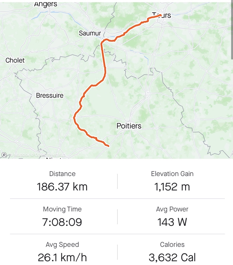 Damit sind wir auf dem Teil 2 von 3 unterwegs und sind soweit ich das sehe in der Region Novelle Aquitaine unterwegs. Es wird leicht hügelig, bisschen rauf bisschen runter, aber noch keine Berge. Wir haben noch circa 2-3 Tage in diesem Stil vor uns und dann kommt das erste Monster, der Mount Ventoux.