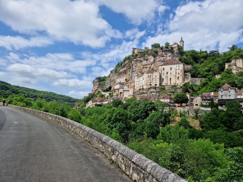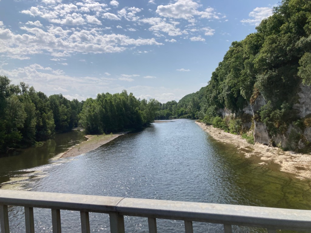 Sarlat und ganz Dordogne (Region) sind für Foie Gras bekannt und das merkt man, auf jeder Vorspeise liegt ein Stück Gänseleber. Am Preis merkt man das auch. Angeblich zählt diese 3000 Einwohner Stadt 100 000 Touristen pro Jahr, gehen die alle für 40 Euro Essen jeden Tag? Der Ruhetag in Sarlat hat uns auf jeden Fall sehr gut getan, bei mir waren alle Ruheschmerzen und auch der Anlaufschmerz weg, und wir haben wieder mehr Watt auf die Pedale bekommen als an den Vortagen. Nach Sarlat sind wir der Dordogne (Fluss) entlang weiter Richtung Osten gefahren.