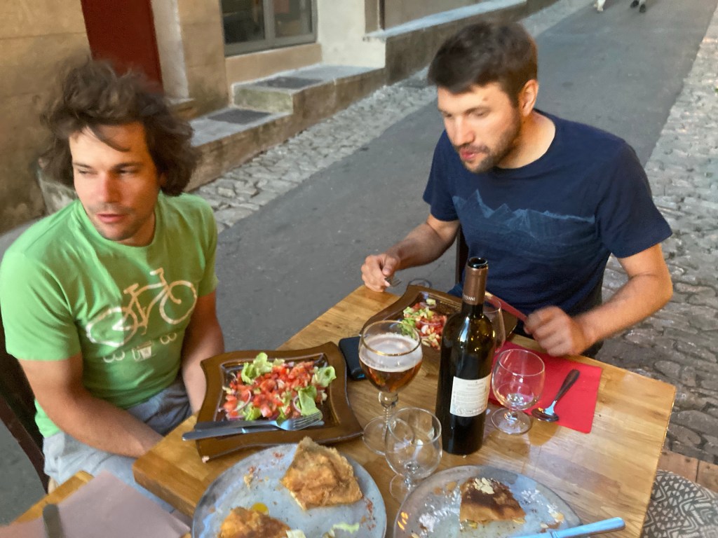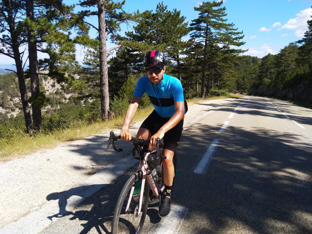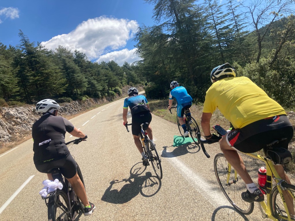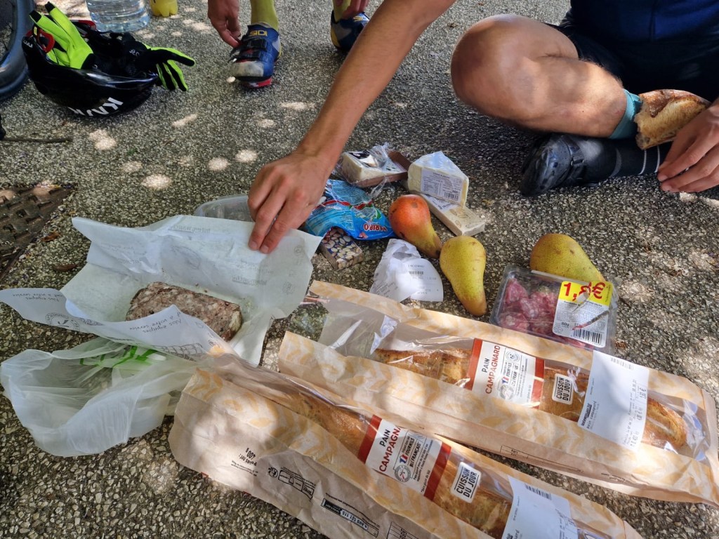 Dieser erste echte Berg wäre nicht so schlimm gewesen, uns ist es allen relativ gut gegangen, und dann habe ich eine Glanzleistung hingelegt. 30 Kilometer nach der Mittagspause in Sault, nach einer langen Abfahrt hab ich bemerkt dass meine Jacke fehlt. Die liegt noch in Sault beim Supermarkt in der Sonne und trocknet. Ich hab mein Hirn kurz verflucht, die 100 Euro zuerst angeschrieben und hab dann aber doch umgedreht. Der Umweg hat mich drei Stunden gekostet, kurz vor Ankunft in Forcalquier habe ich dann auch noch einen Platten gehabt. Ein krönender Abschluss, ich war hin nach dem Tag.