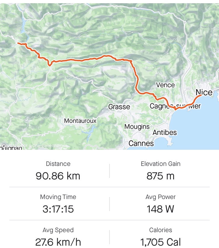 Der Tag war nix zum herzeigen, kurzer Anstieg und dann 60km nach Nizza in den Restday rollen.